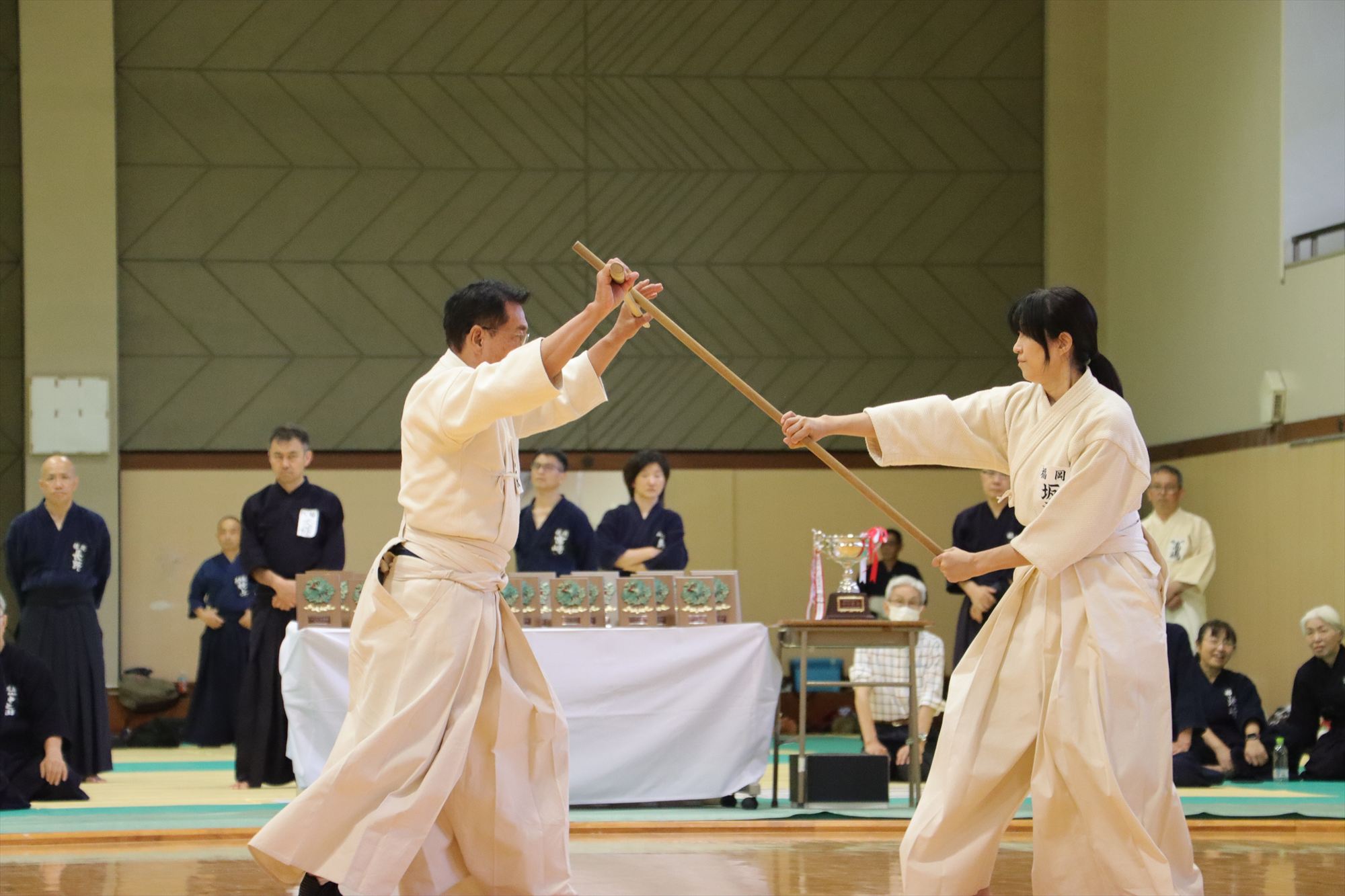 7月27日、第44回福岡県杖道大会が開催されました。 試合はトーナメント方式にて 「少年の部」「無段の部」「初段の部」「二段の部」「三段の部」「四段の部」は全日本剣道連盟杖道の形5本 「五段の部」「六段の部」は古流2本+全日本剣道連盟杖道の形3本 の指定により仕杖のみを勝負判定として行いました。 入賞者された方は次のとおりです。 第44回福岡県杖道大会結果報告.pdf